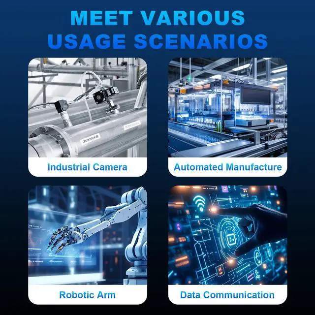High performance signal transmission; Our M12 X Code 8 Pin Male to RJ45 Ethernet cable is designed with a twisted pair and double shielded construction, incorporating a pure copper wire core and high density tinned shield; This structure minimizes signal crosstalk, delivering more stable and faster data transmission, ensuring optimal performance for all your industrial network needs