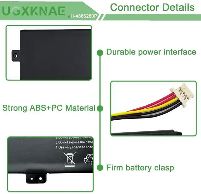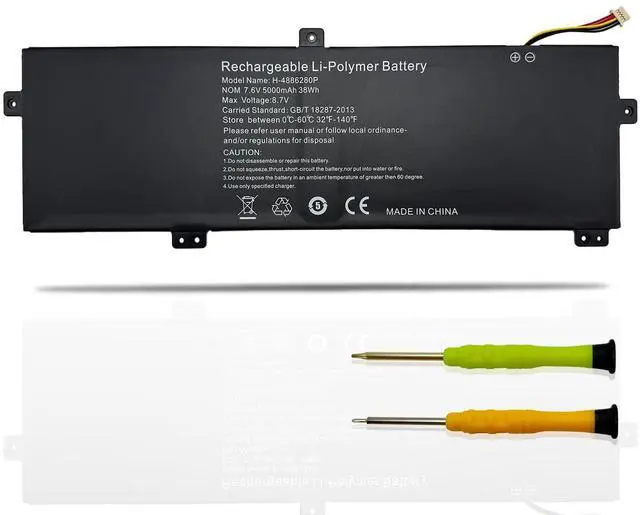 • Specifications: Model Name: H-4886280P standard Rechargeable Li-ion Battery; Battery Type: Lithium_ion; Voltage: 7.6 V; Capacity: 38 Wh 5000 mAh. Color: Black. Packages includes:1x H-4886280P Laptop Battery, 2 x Screwdrivers for easy installation, 1x Instruction