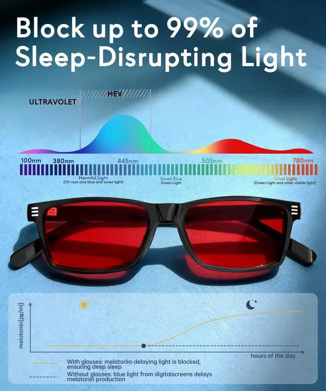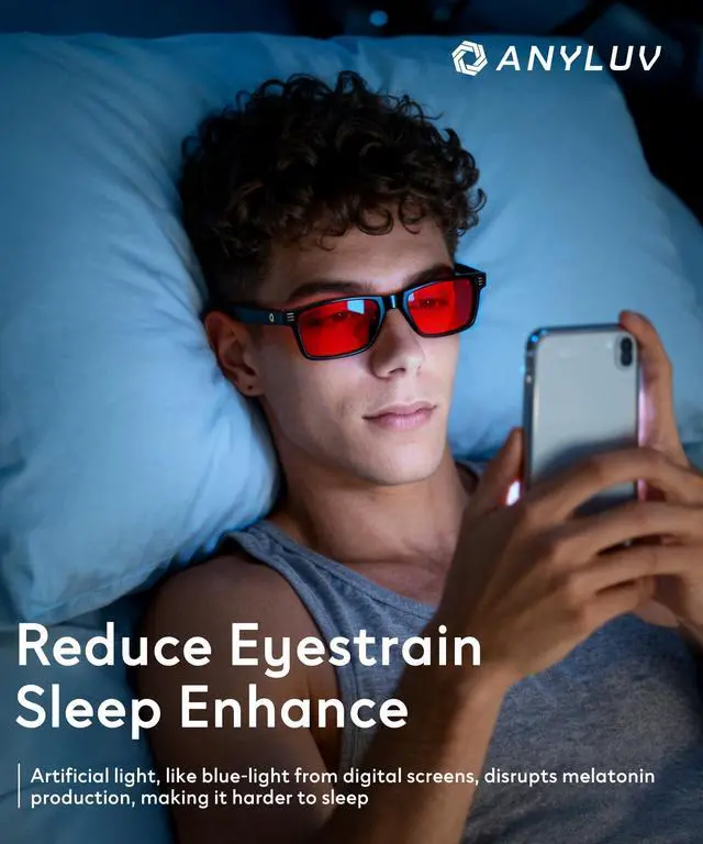 Wellness Focus: Enhance your overall well-being by addressing sleep disturbances that can affect your daily life. ANYLUV's blue and green light blocking glasses are designed to promote healthier sleep cycles, fostering rejuvenating rest essential for both mental and physical health. Make quality sleep a priority to regain your vitality and enhance your daily performance.