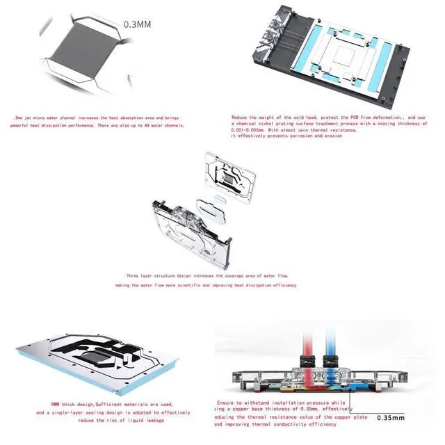 Tips: 1. Please double check the graphics card detail model to ensure compatibility. Please feel free to contact us if you are not very sure. 2. Prohibit the use of alcohol containing coolant. 3. Graphics card block installation requires a certain skill and experience, because the graphics card manufacturing tolerances may have a certain impact on the block installation, we can assist buyers to solve such problems, but this can not be the basis of returns.