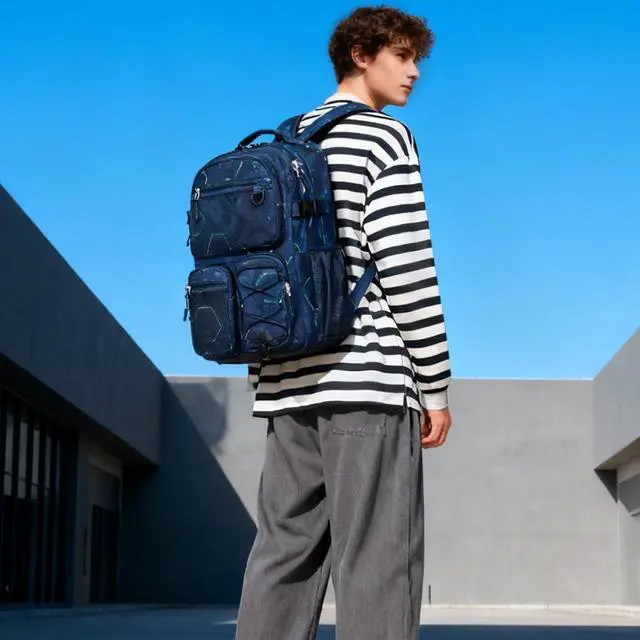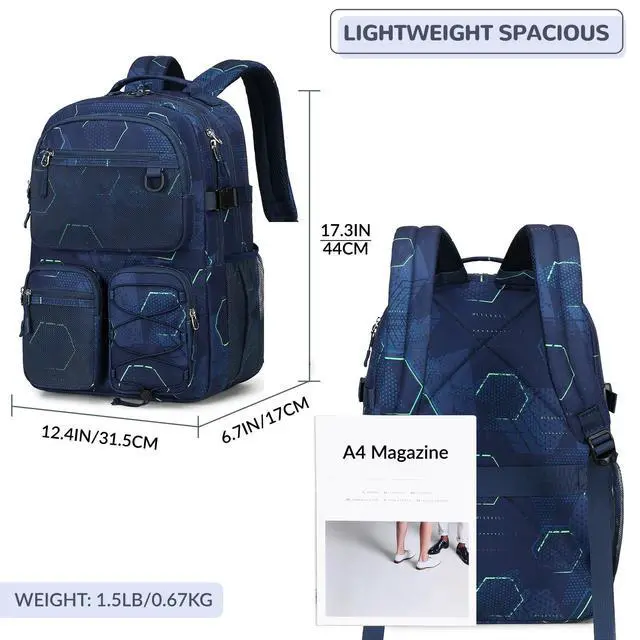 Lohol Multi-Pocket Backpack for Travel College, Heavy Duty Big Bookbag with 15.6 inch Laptop Compartment (Navy Geometry