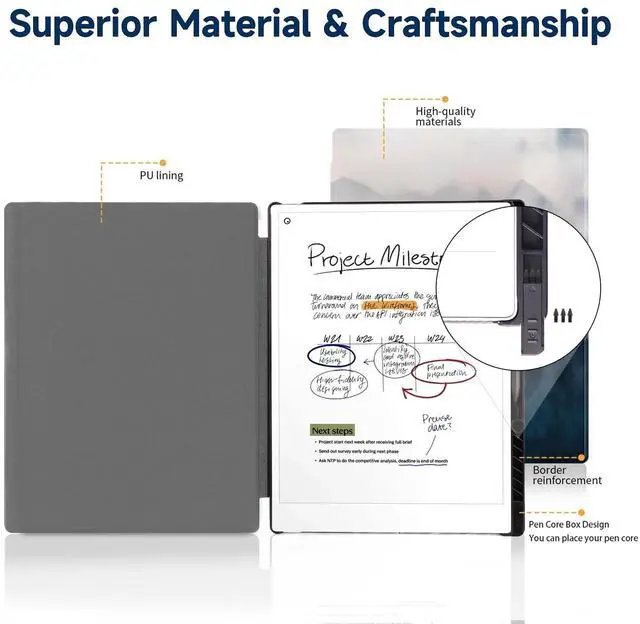^^ Premium MaterialsHigh quality premium faux leather case with fully comprehensive screen protection, prevent from scratches and daily damageproviding a firm grip and guaranteed durability, We have increased the reinforcement shape in the protective case, Make Remarkable Paper Pro case more durable. ^^ User-friendly ExperienceThis case suitable for Remarkable Paper Pro Tablet 11.8" (2024 Released), If you have any questions about the product, please contact us in time! wish you a happy shopping!!!!