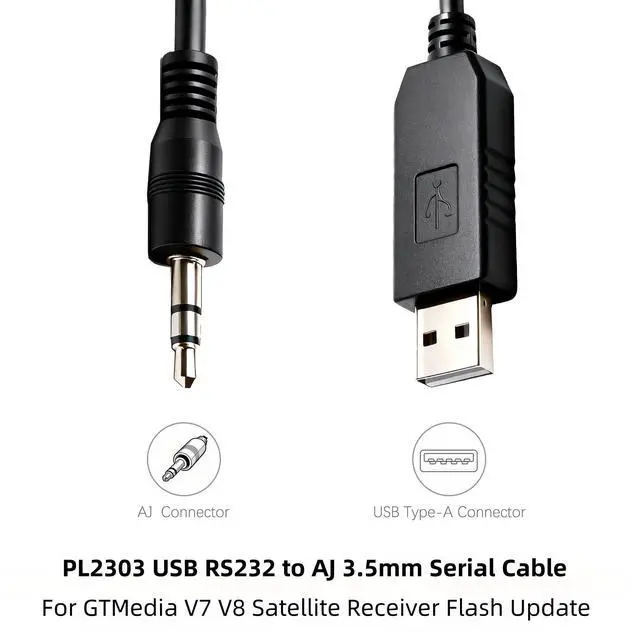 USB to RS232 Serial Update Upgrade Flash Cable for GTMedia V7 V8 Super Satellite Receiver SAT TV Box Flash Refresh UpdateThe Xiusiyt PL2303 USB to RS232 Serial Cable is designed for flashing and updating firmware on GTMedia V7 and V8 satellite receivers. It ensures a stable connection with its Prolific PL2303 chip and offers plug-and-play functionality for ease of use. Ideal for troubleshooting non-booting receivers. This cable is used for Flash Refresh Update your GTMedia V7 V8 Sat Box which dont't bootup. Suitable for V7S /V7Plus /V8Nova /V8Honor /V8Pro2 /iFireSuitable for V7Pro /V7TT /V8X /V8TURBOWhen the cable is conncted to the PC, usually it will install the driver directly.