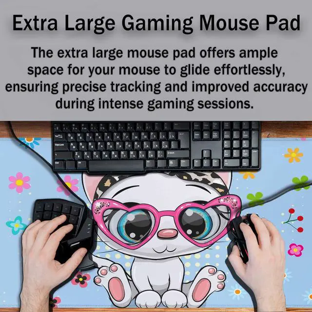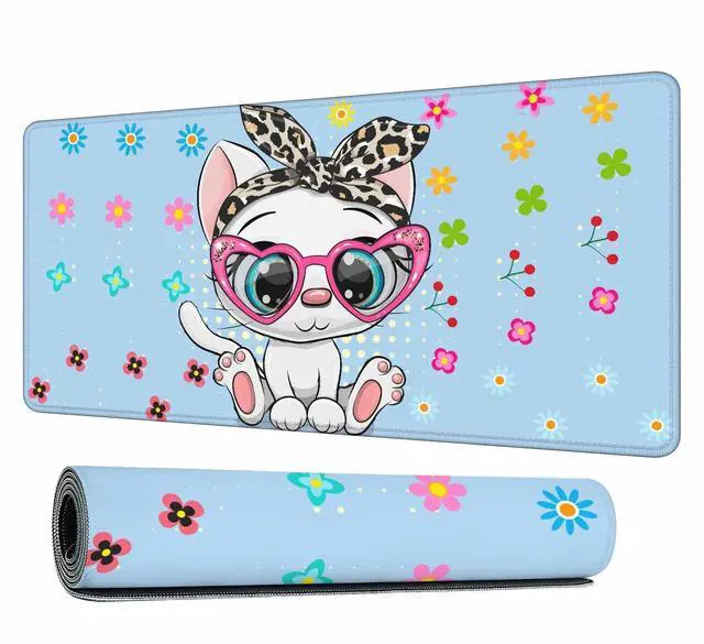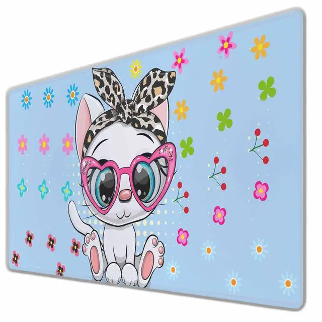 Y YIHANGBEST Cute Cartoon Kitten Cat Mouse Pad A Bow and Heart Glasses Deco XL Gaming Mouse Keyboart Mat for Desk,Computer,Office,Home 35.4"X15.7"