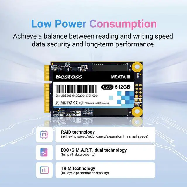 ^^ Technical Support: Whether it's achieving speed and security through RAID technology, realizing end-to-end protection from the microscopic to the macroscopic level via ECC and S. M. A. R. T., or maintaining long-term performance stability with TRIM technologyall these advanced features are integrated into this compact MSATA SSD. It is not just an upgrade; it infuses your data environment with an intelligent, reliable management system.