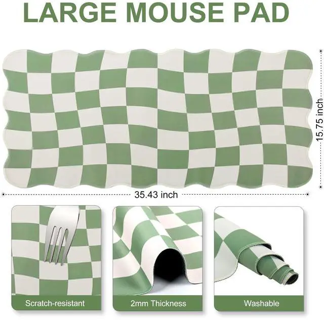 Pad Size: XXL mouse pad measures 35.4" x 15.7", this green groovy square desktop mat provides ample space for your mouse, gaming keyboard, and other desktop essentials. Its large size keeps your workspace neat and organized, perfect for both gaming and office use ^^