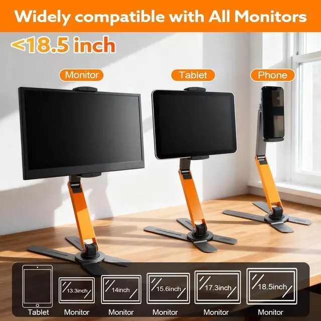 ^^ Wide Application: The portable monitor stand not only work for 10- 18.5 inch light and thin portable monitor, also for e-readers/tablets/iPad, suit for iPad Pro 12.9, iPad Air, iPad, iPad mini, Samsung Galaxy Tabs, Surface, Surface Pro, Kindle Fire HD, and drawing tablet.