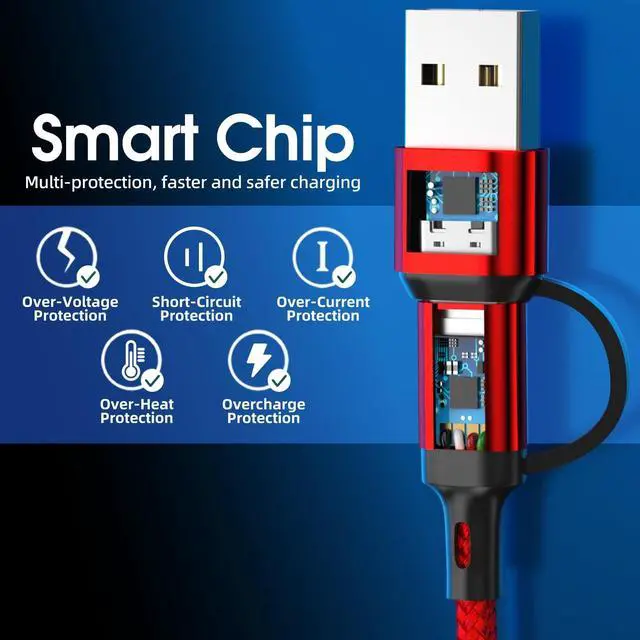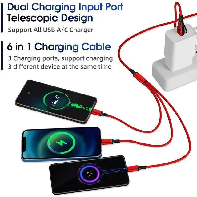 ^^ Convenient and PortableIdeal length 4Ft/ 1.2M is optimal to use in home, office, car, traveling & more. Nylon braided 6-in-1 Charger Cable is very easy to fold and place in your handbag, laptop bag, pocket etc. The multi connectors allow you to enjoy videos, games, chat. Charging multi device at the same time, without the clutter of multiple cables. ^^ What You Can GetWith this purchase, you'll receive 3X4FT universal phone charging cables(Black/Red/Silver), providing you with a reliable charging solution for all your devices.