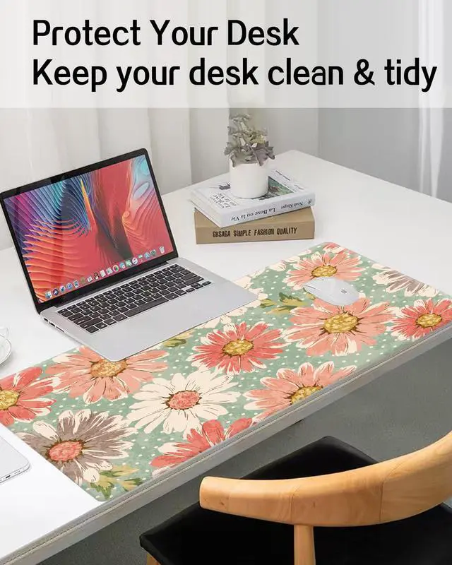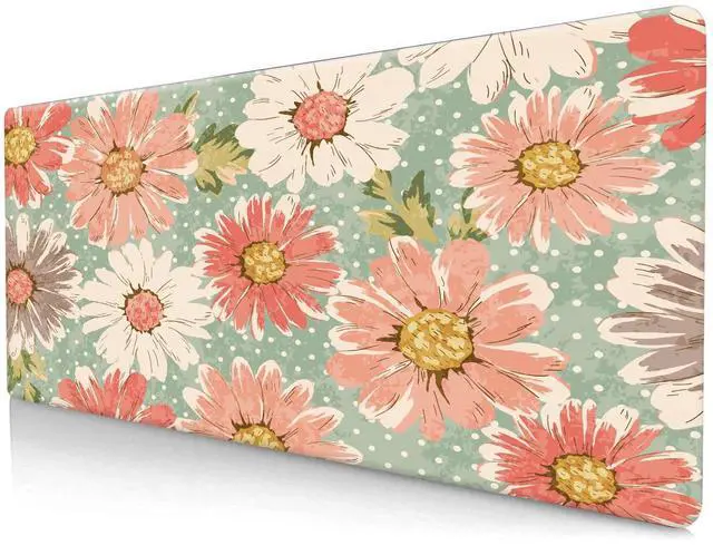 ALTEKO Large Gaming Mouse Pad, Computer Mouse Mat, Funny Desk Pad Protector Decoration, Big Cute Desk Pad, Non-Slip Base 31.5 x 11.8 in Retro Boho Flowers