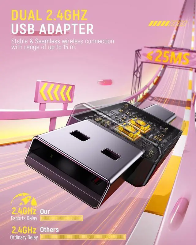 True Lossless Sound Quality: Engineered for impeccable audio fidelity, this headset features latest cutting-edge 2.4 GHz chip for truly lossless audio transmission, offering every detail with exceptional precision and no loss of audio fidelity.