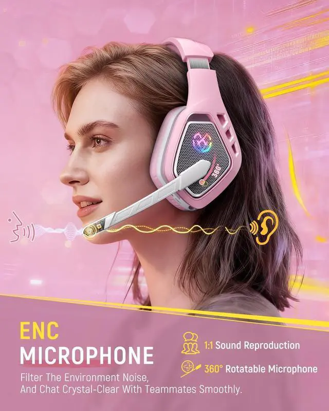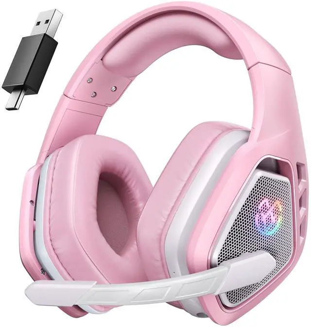 Tatybo Wireless Gaming Headset for PC, Ps5, Ps4, 2.4 Ghz USB & Type-C Gaming Headphones with Microphone, 30H Battery Bluetooth Headphones for Switch, Laptop, Mobile, Mac (Pink)