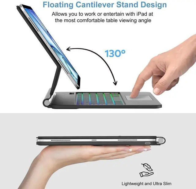 RAINBOW BLACKLIGHT: The magic keyboard for ipad air 13 has eye protection rainbow backlight, and typing in the weak light environment can not be affected. At the same time, the compatible with iPad pro