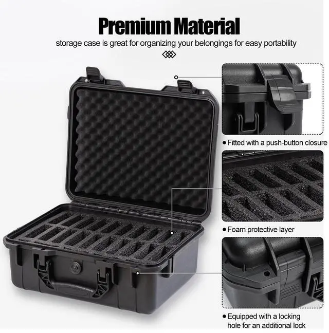 Hard Drive Case 3.5inch 20-Bay Multi-Protection HDD Storage Box Suitcase with Foam External Hard Drive Carrying Case Anti-Static Shock Moisture Proof for HDD/SSD/M.2