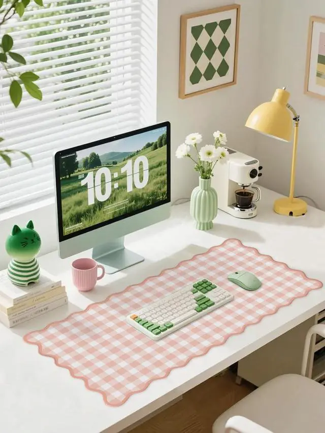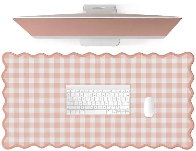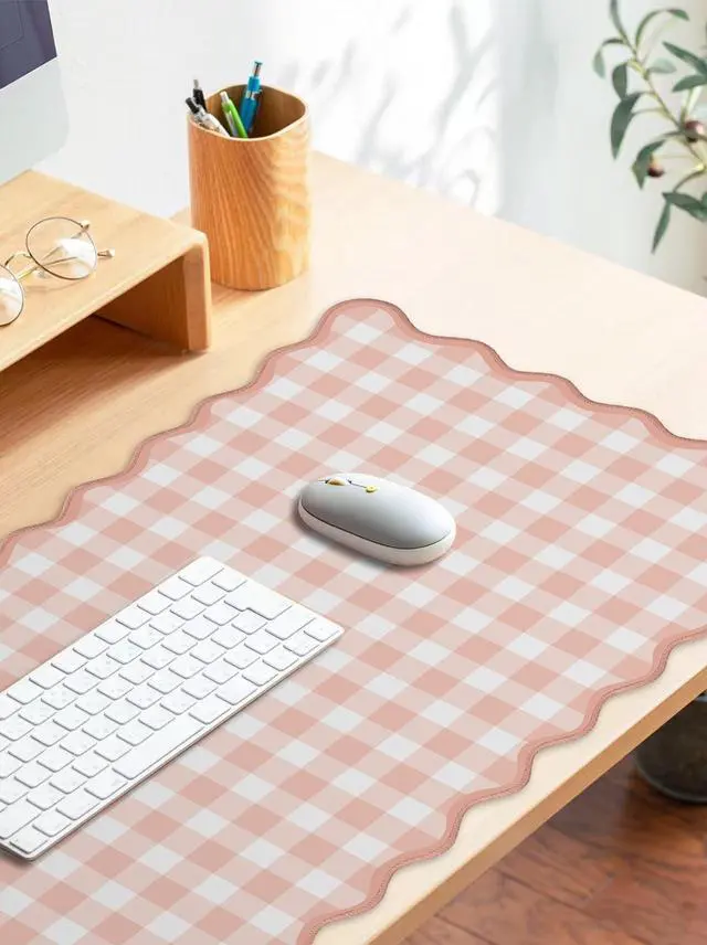 Stylish Pink Gingham Desk Mat: Featuring a charming gingham pattern, this xxl large mouse pad adds a touch of playful elegance to your desk. The classic checkered design is both timeless and trendy, making it a perfect match for any home or office decor style. ^^