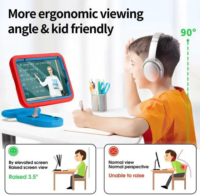 Raised Screen Viewing AngleiPad's elevated viewing angle is closer to your natural line of sight and more ergonomically designed to keep you in a comfortable position even when using it for long periods of time.iPad mini case incorporats into spider-elements to provide your kids colorful l