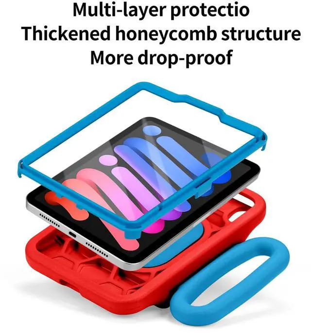 Kids Case for iPad mini 7 (A17 Pro) 2024 / iPad mini 6 2021, Child Friendly Case with Adjustable Portrait/Landscape Stand,Heavy Duty Cover with Screen Protector for iPad mini 7/6 8.3 inch(Redblue)
