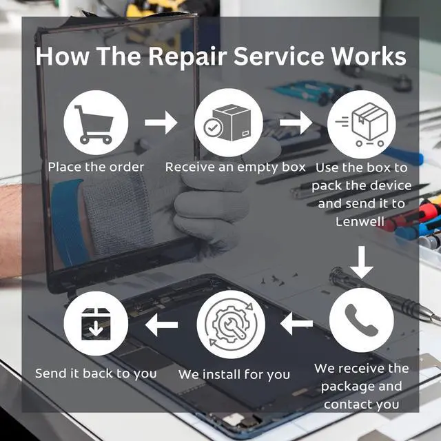 STEP 3: Wait patiently. Your Screen Repair will be finished by the next business day after we receive it. Afterwards it will be returned to you. Additionally, we offer a 30-day Coverage for non-artificial damage and non-water damage on screens we have repaired. ^^ Unique Screen Replacement Repair Service From LW service pack, you will get free screen repair service. This service is designed to address the problem for the most people, who attempt to replace their screens themselves, but causing damage to their device. What's more, our expert repair team will assist in screen replacement and conduct a thorough maintenance check for your device. ^^ Advantages of LW Repair Service 1. Significantly less expensive than local phone repairing stores. 2. We repair your device with expertise and precision. Rest assured, we never access or factory-reset your data. Instead, we prioritize preserving your data and device settings. 3. Prevents customers from attempting DIY replacements of damaged devices and screens, avoiding financial losses. 4. We provide 100% ORIGINAL LCD SCREENS. 5. We have multiple color models for the iPad to choose.