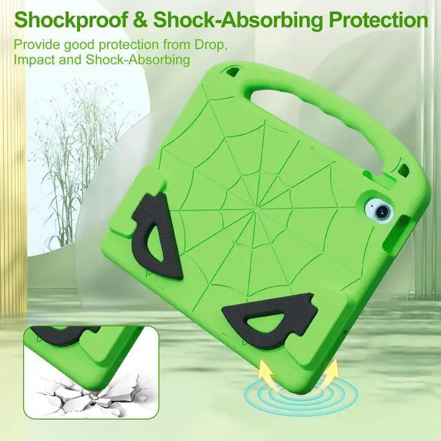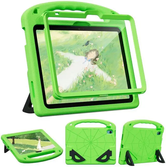 ^^ Versatile Stand: Designed with a kid-friendly handle with anti-slip texture. It is easy for kids to carry around and fold it back to convert into a sturdy stand for hands-free viewing and comfortable typing.