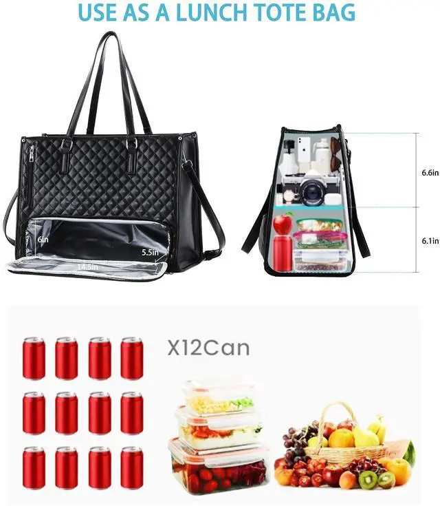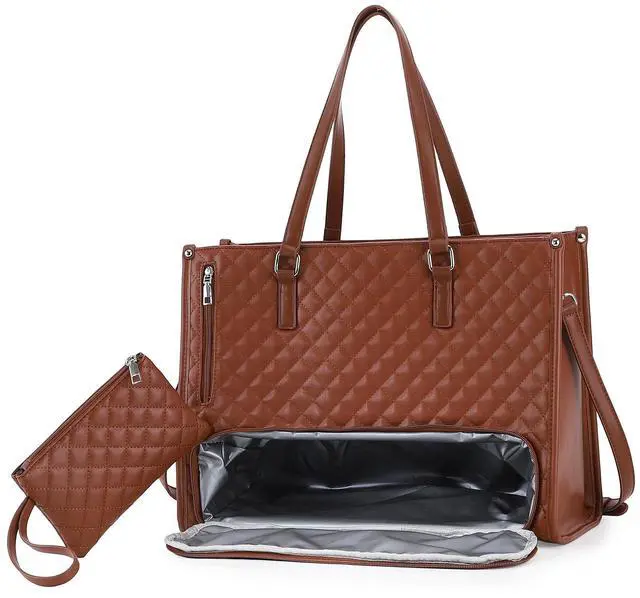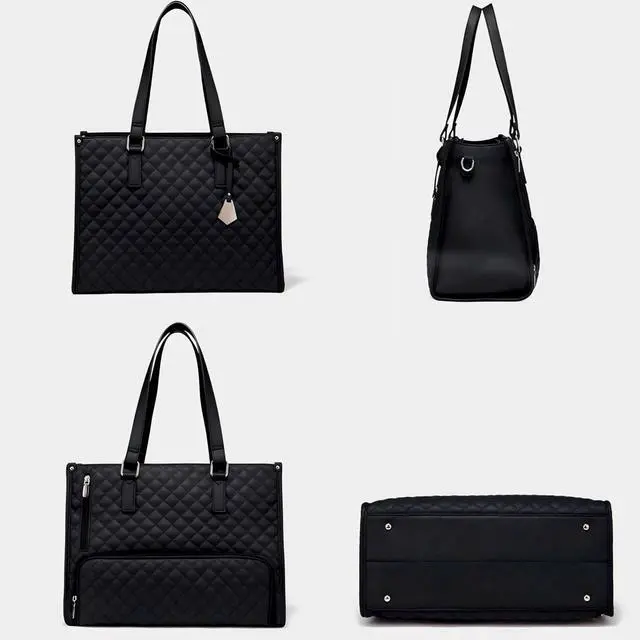 DescriptionElevate your daily commute with this versatile 3-in-1 tote bag that combines style and functionality. This thoughtfully designed quilted handbag features a spacious main compartment that accommodates up to 15.6 -inch laptops, an insulated lunch compartment to keep your meals fresh, and a dedicated purse section for your essentials. Perfect for busy professionals, nurses, and anyone seeking organized efficiency, this large-capacity bag seamlessly transitions from office to casual outings. The sophisticated quilted exterior adds a touch of elegance while maintaining durability for daily use. With multiple compartments and smart organization features, this tote helps you carry your laptop, lunch, and personal items in one streamlined solution.