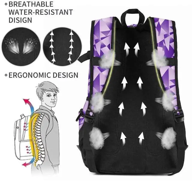 -Applicable People: Men, Women; College/University Campus Students, High school, Middle school, Elementary, Primary school boys & girls; Parents, ect. )-Comfort with featuring ergonomic designed adjustable padded reinforced shoulder straps, makes the backpack all day use as a breeze. -High-quality, strong, long lasting nylon fabric builds our sturdy and solid backpack with great performance on water-resistance, anti- striking and anti-scratching. -Twin metal zippers with fabric flaps over to keep water out of the backpack and last much longer than plastic ones. Easy at opening and closing the backpack. Double stitching at stress points adds valuable security to seams, handles, and straps, enhancing the durability. And additional top handle provides extra help while lifting or moving the backpack.