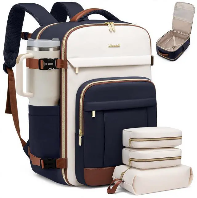 Capacity: Featuring 5 main compartments, this backpack easily accommodates essentials for 3-5 day trips. Organize clothes, shoes, and electronics effortlessly, making it perfect for both business and leisure travel. Side pockets accommodate large water bottles for hydration on the go ^^ Includes Packing Cubes & Wet Pocket: Stay organized and neat with 3 additional packing cubes and a wet pocket for toiletries and damp items. Keep your belongings dry and easily accessible throughout your journey ^^ Durable and