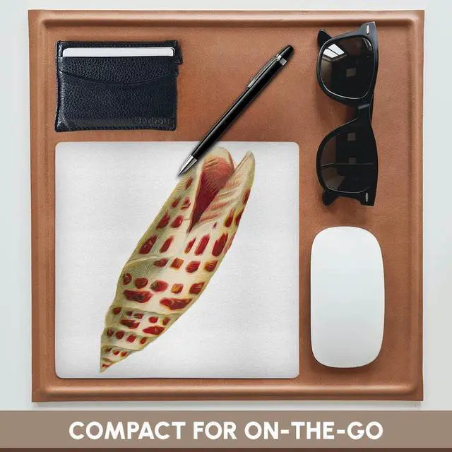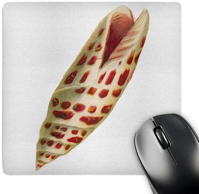 Vintage Spotted Terebra Seashell Nautical Illustration Vignette Mouse Pad is 8" x 8" x. 25" and is made of heavy-duty recycled rubber. Matte finish image will not fade or peel. Machine washable using a mild detergent and air dry.