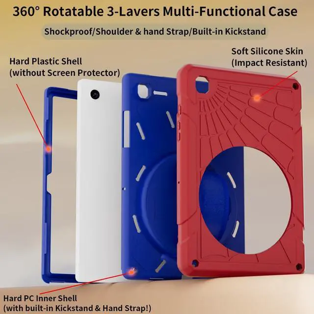 Soft Hand Strap & Portable Shoulder Strap & Rotating Stand: Provide the securest protection and more convenience when you play or work with the case for Samsung Tab A8. Hang it anywhere for your better entertainment, and make your hands free. 360 Degree rotating Kickstand provides multi-angle viewing, with a soft handle strap, easier to use your tablet in your outdoor travelling, working, gaming