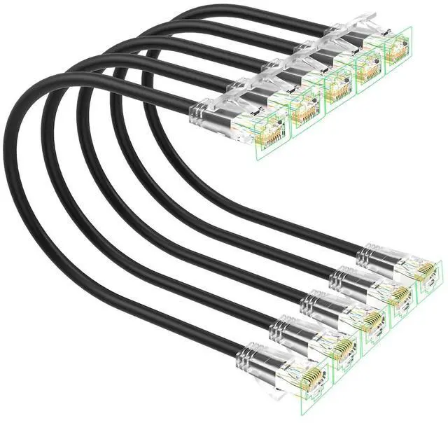 ^^ Soft and flexibleSlim patch cables are very soft, can be bent in any direction, making short or long distance wiring easier. Thin cat6 patch cable are also very flexible, making it easy to fit them into tight spaces. Slim cat6 patch cable are well-made and use to connect various network devices. Such as connections between server devices, smart TVs, game consoles, streaming devices and switches. ^^ Clear Snagless BootCat 6 cables come with clear snagless boot and strain relief, protect the cable well. Cat 6 patch cable end can snaps securely into the ports without any wobble, provides smooth and uninterrupted data transfer.