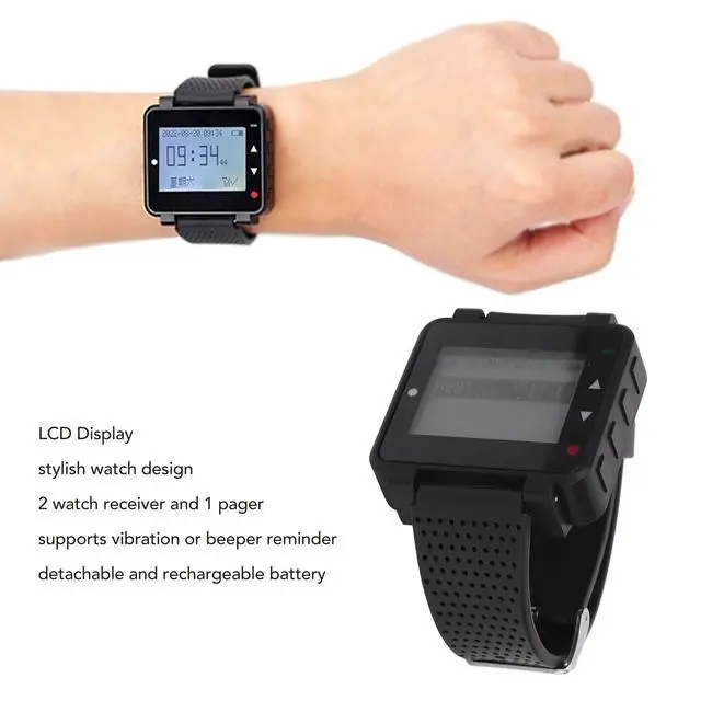 ^^ Stylish Watch: This calling system provides 2 watch receiver and 1 pager in stylish watch design.