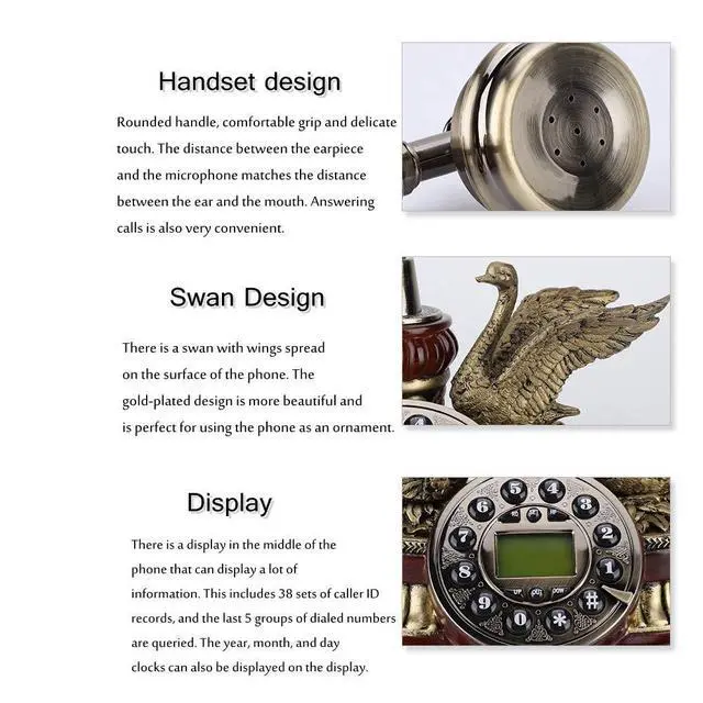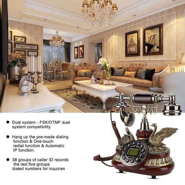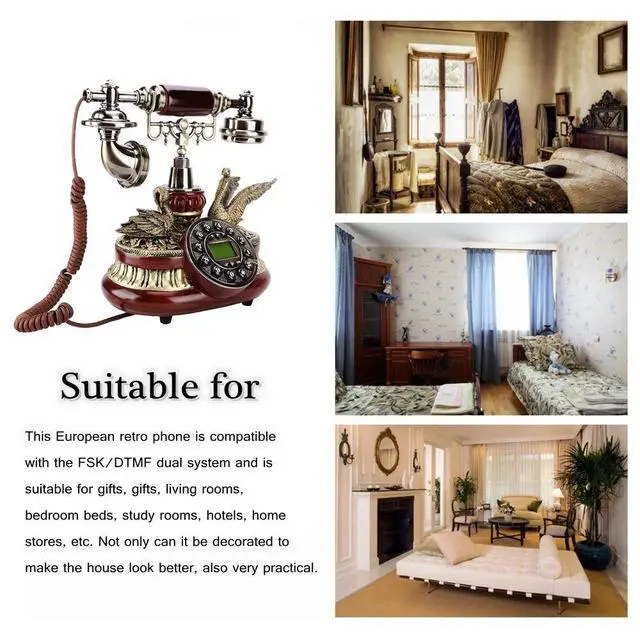 High QualityThis vintage decorative landline is made of environmentally friendly resin + metal bracket + ABS handle accessories. Vivid three dimensional carved shape, elegant temperament and exquisite workmanship. No matter where it is placed, it is a work of art ^^ Multi FunctionThis is a real working landline home phone. Large and clear buttons, the landline phone is designed with a large numeric keypad, so you can clearly identify it. Support hang up the pre made dialing, year, month, day clock display function, automatic IP and one touch redial function,, DTMF dual system compatible ^^ HD CallingThis antique telephone has noise cancelling function, the call quality is clear and noise.