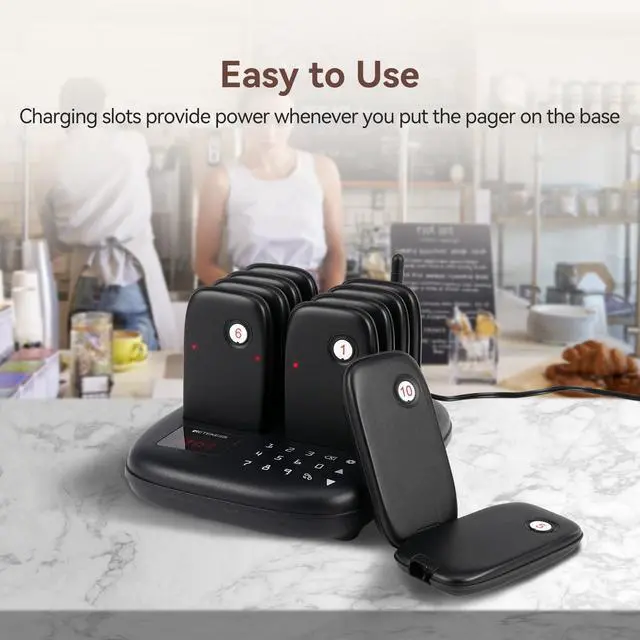 Long Distance: the pager calling system is 1000 meters outdoors and 100-300 meters indoors; let your guests move freely and let them rest assured that they will be paged every time ^^ 7