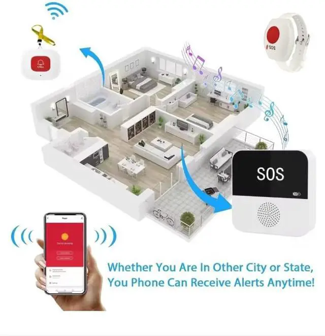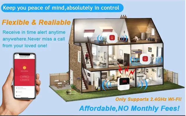 Easy Setup & Instant Alerts - This life alert system for seniors features simple WiFi ( 2.4GH z) installation and immediate smartphone notifications when the panic button is pressed. Includes detailed activity logs for caregiver peace of mind. ^^ Reliable Whole-Home Coverage - The life alert systems maintain strong 230ft connections through walls/floors, with 5 customizable ringtones and adjustable volume/brightness to suit different home environments. ^^ Family Monitoring Network - Using the TUYA app, multiple caregivers can simultaneously receive alerts when the life alert systems for seniors are activated - ensuring no missed emergencies.