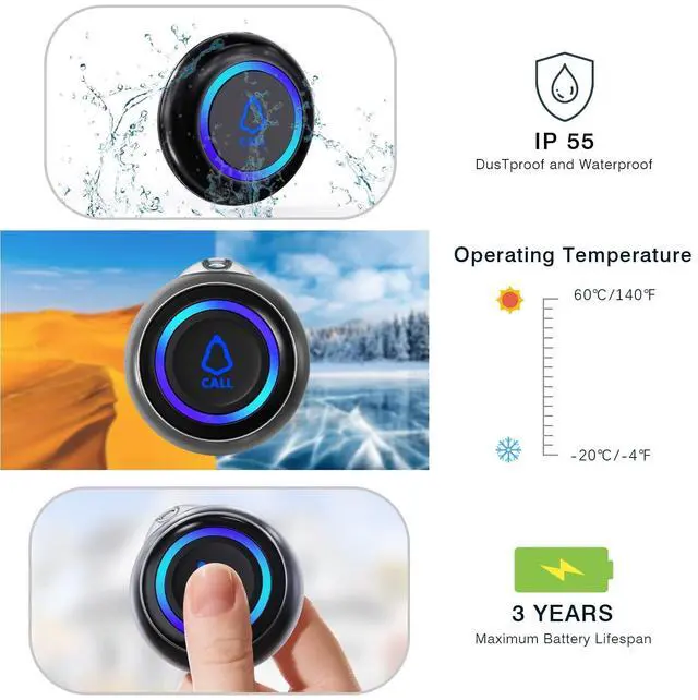The Caregiver Pager Call Button allows seniors, patients, and those needing help to request assistance with a button press. The plug in receiver features 58 Ringtones and 0-120dB 5-level adjustable volume, expandable to 30 buttons. Ideal for homes, hospitals, nursing homes.