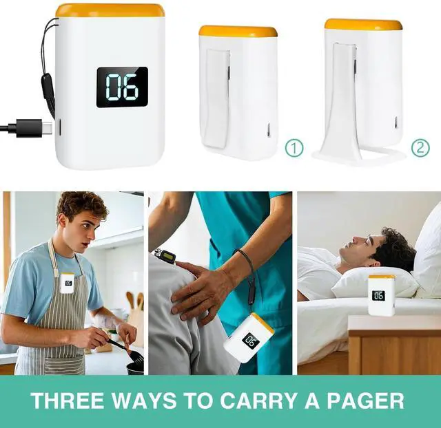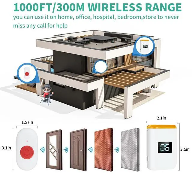 ^^ Caregiver Pager Wireless: Allow caregivers and residents to be free while ensuring that help is still available at the touch of a button, the open area working range is 1000+ ft, you can take it to the bedroom, kitchen or yard. ideal for elderly, seniors, patients, disabled ^^ Portable Pager with Practical Alert
