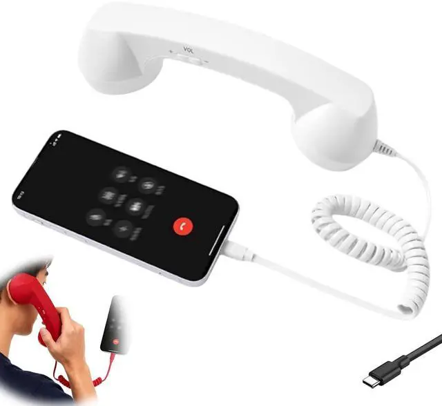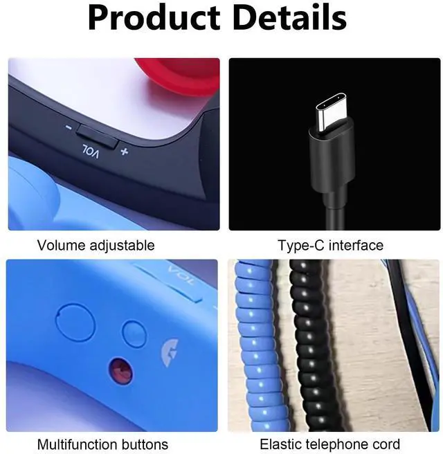 Made of ABS material, strong and reusable, elastic telephone cord, about 1 meter long, suitable for daily use, Type-C, compatible with most mobile phones or laptops ^^ Stylish retro telephone handset, available in different colors, easy to use, lightweight and portable, Clear sound quality, ergonomic design, fits snugly in the ear ^^ No Bluetooth connection or charging required; simply plug it in to use. You can answer calls and adjust the volume