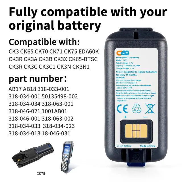 For Intermec Scanner Battery: CK75 battery is Fully compatible with for Intermec CK3 CK71 CK75 EDA60K CK65 CK70 CK3R CK3X CK3XR CK65-BTSC CK3A1 CK3C1 CK3N CK3B PDA Scanner device ^^ CK65