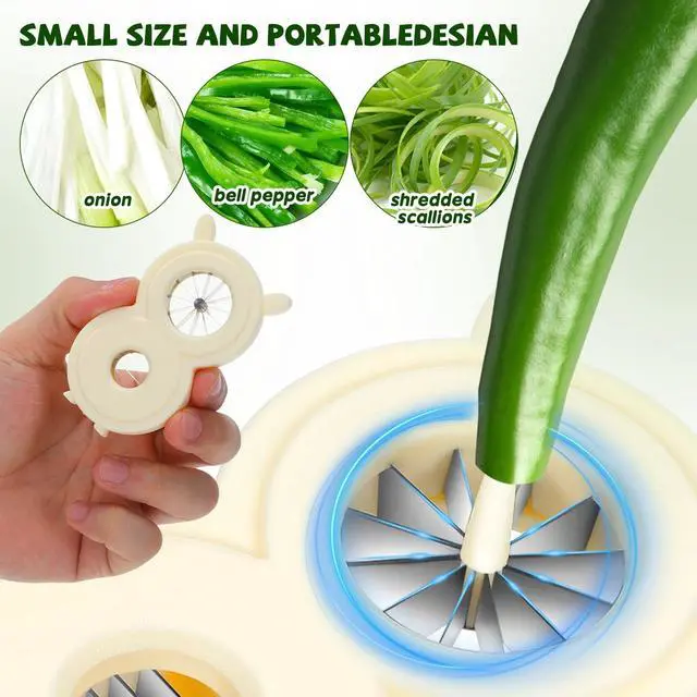 Core Functionality: This scallion shredder is designed to effortlessly slice and shred scallions and other vegetables, making meal preparation faster and more efficient for both home cooks and professional chefs ^^