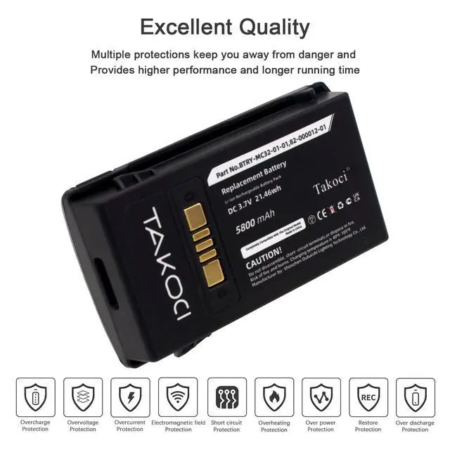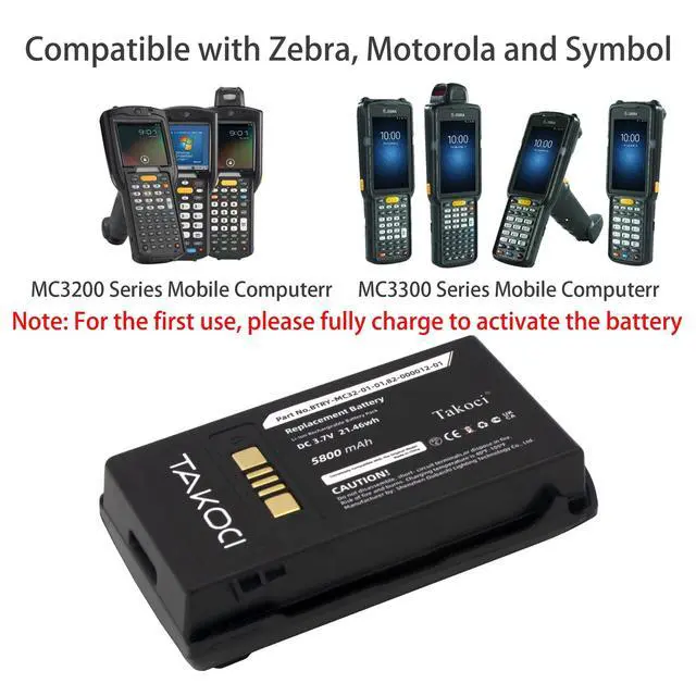 Warm Reminder: Can use "Ctrl" + "F" easily to find your models. Brand New - Premium quality Zebra/Motorola/Symbol BTRY-MC33-52MA-01 5800mAh Mobile Computer replacement battery. Designed for reliable performance and high durability, this battery is 100% compatible with the original equipment. For the first use, please fully charge to activate the battery. Quick charge with multiple circuit protection to prevent the battery from overcharging, high temperature, over current protection, over-voltage protection, and short circuit protection.