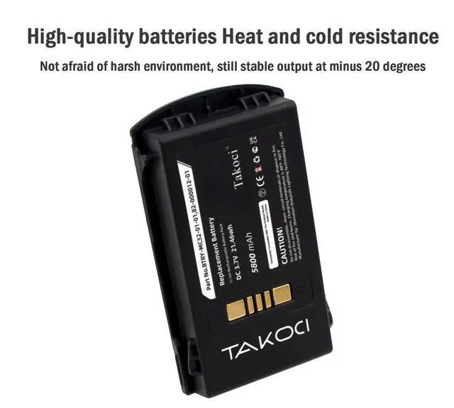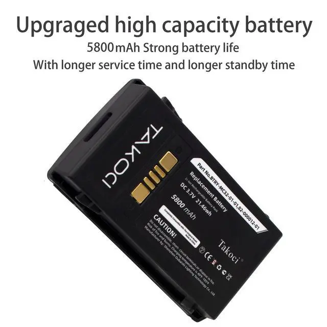 Fit Model: Zebra/Motorola/Symbol MC3300Zebra/Motorola/Symbol MC3200Zebra/Motorola/Symbol MC32N0Zebra/Motorola/Symbol MC32N0-SPart Number: BTRY-MC33-52MA-01, BTRY-MC32-01-01, BTRY-MC32-02-01BTRY-MC32-52MA-10, BRTY-MC32-52MS-01, 82-000012-01Standard: Voltage 3.7VR ate 19.24W hTypeLi-ionCapacity5800mAhNet Weight 108.0 g/ 3.81 ozGross Weight 130.0 g / 4.58 ozSize 80.10 x 45.72 x 22.80 mmNote: Please check the compatible model and the original battery number before purchasing. If you are not sure, please feel free to send an email to us with your battery details or pictures, and we will give you free professional suggestions. Your satisfaction is very important to us, if you have any questions, please feel free to send an email to contact us, and we will reply within 24 hours.