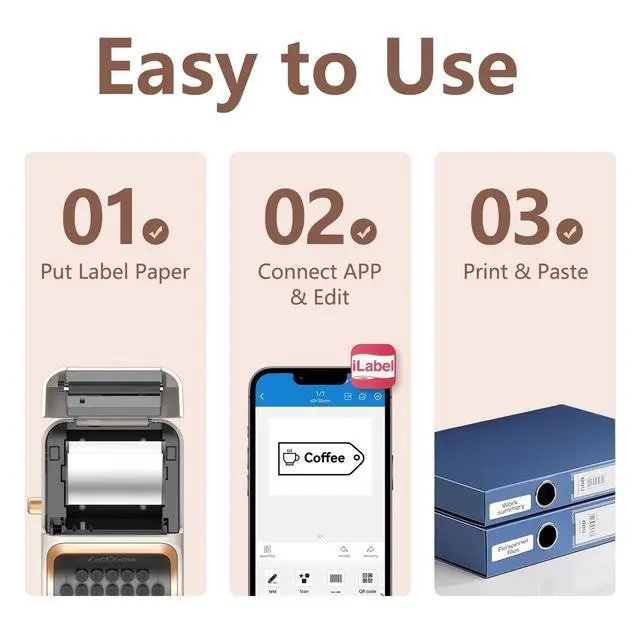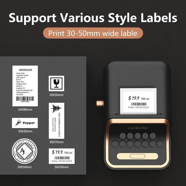 Small Business: Prints 1.2" - 2" wide labels 0.6" - 6" higt lables; ideal for home organization (storage box, bottle, jar, food container, etc. ), small business (shipping address, product info, QR Code, brand logo, etc. ), or school and office supplies (name tag, folder, documentation, etc. ) ^^ After the technical updating, we combine the label maker with the smart device, which is more convenient and powerful. The weight and volume are only half of the traditional version. from now on, we bid farewell to the heavy, power-consuming, and money waste old version ^^ It's rechargeable. 1000mAh battery, which saves the trouble of long-term battery purchasing and replacement, and it's also very environmentally-friendly. ^^ Ink-less, Smooth & Fast Printing- Adjustable Paper Holder, it is built to prevent paper jams and deviations, makes your printing more fast. It is thermal printer, no ink printing, no need to use ribbon. Only print black and white ^^ It is support to print various texts, numbers, graphics, symbols, logos, barcodes, QR codes, etc.