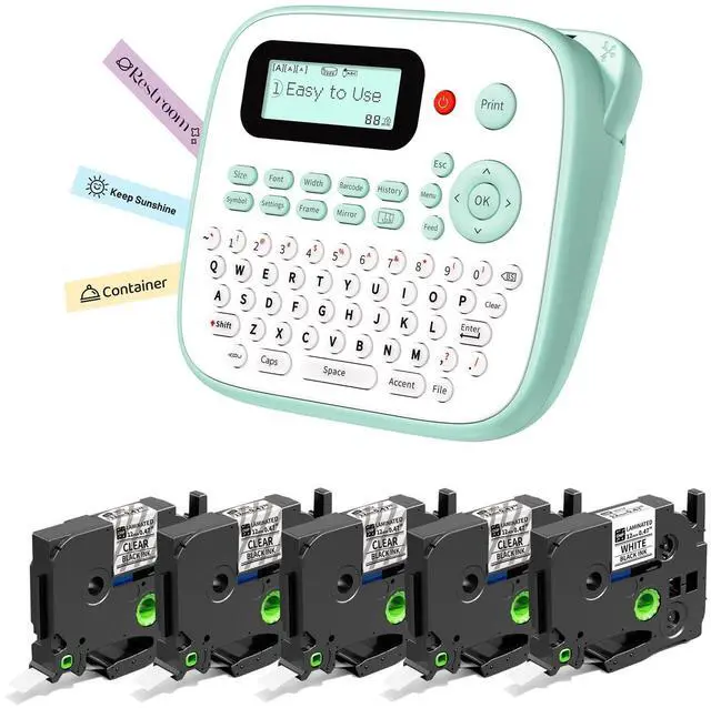 Green Label Maker Machine with 5PK Tapes Bundle(Black on White*1 + Black on Clear*4)