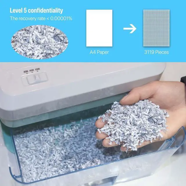 2kgMaterials: ABS, AS, Steel: -What can be shred? Paper, file, documents, receipt, business card-What can't be shred? Paperclip, anything with stickers, like photos with plastic film, adhesive delivery note etc..