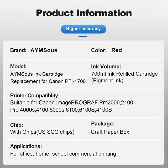 Compatible Printers: Perfectly work well with Canon imagePROGRAF Pro2000, 2100 Pro 4000s, 4100, 6000s, 6100, 6100S, 4100S Printers ^^