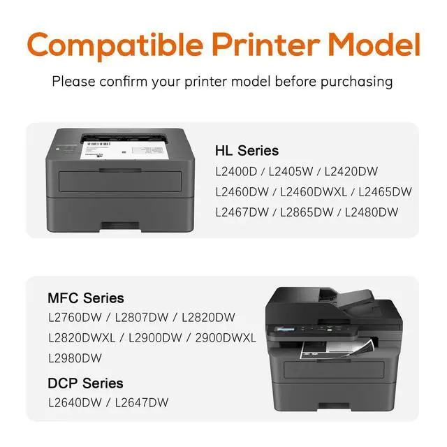 ^^ Printer Compatibility: TN830XL TN830 Toner Compatible for HL-L2460DW, HL-L2405W, DCP-L2640DW, HL-L2400D, MFC-L2820DW, HL-L2420DW, HL-L2460DWXL, HL-L2465DW, HL-L2467DW, HL-L2865DW, HL-L2480DW, DCP-L2647DW, MFC-L2760DW, MFC-L2807DW, MFC-L2820DWXL, MFC-L2900DW, MFC-2900DWXL, MFC-L2980DW printers.
