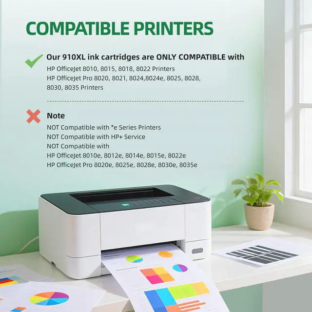 ^^ Note: This 910xl ink cartridge is not compatible with any e* series printers or printers that have already been registered for the HP+ service. Please confirm your printer model before purchasing.