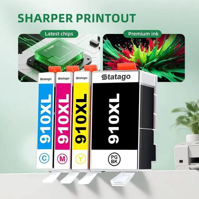 With the latest chips: Our Statago 910XL ink is equipped with advanced chips to ensure perfect printer compatibility and excellent print quality. You can enjoy outstanding results, producing crisp, vivid, and true-to-life documents, photos, and graphics.