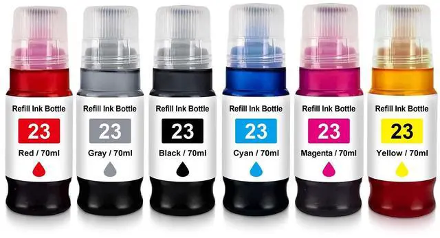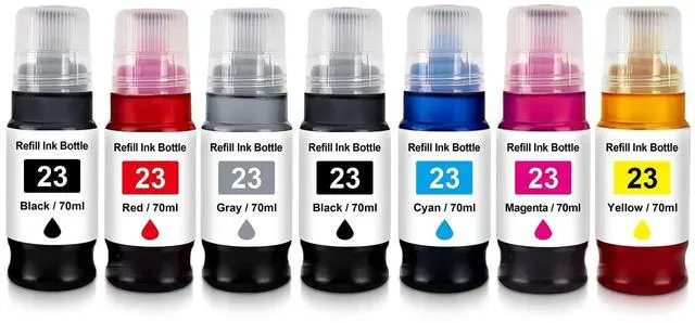 Compatible with Ink Bottle: GI-23 Black GI-23 Cyan GI-23 Magenta GI-23 Yellow GI-23 Grey GI-23 Red(NON-OEM).