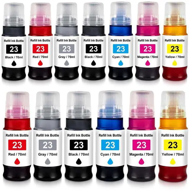 Large Capacity: 70ml for GI23BK Black Ink Bottle, 70ml for GI-23 C/M/Y/R/GY Color Ink Bottle.