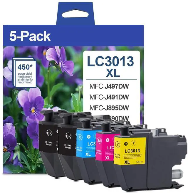 Newest Chips - Replacement for brother ink cartridges lc3013 xl with the latest intelligent chips to ensure compatibility with your printer ^^ Compatible Printers - lc3013xl compatible for brother printer ink lc3013 work with MFC-J497DW, MFC-J491DW, MFC-J895DW, MFC-J690DW Printer ^^ High Page Yield - 450 pages per LC3013 XL black ink cartridges and 450 pages for LC3013 XL color ink cartridges High Yield Ink Cartridge (Letter/A4, at 5% Coverage) ^^ Package Contents - ink LC3013XL includes 2 x LC3013BK XL Ink Cartridges, 1 x LC3013C XL Ink Cartridge, 1 x LC3013Y XL Ink Cartridge, 1 x LC3013M XL Ink Cartridge ^^