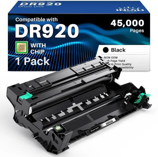 Product Item INK4U Compatible Drum Unit Replacement for Brother DR920 Drum Unit ^^ Printer Compatibility Compatible with HL-L5210DN, HL-L5210DW, HL-L5210DWT, HL-L5215DW, HL-L6210DW, HL-L6210DWT, HL-L6217DW, HL-L6310DW, HL-L6415DW, HL-L6415DWT, HL-EX415DW, DCP-L5510DN, MFC-L5710DN, MFC-L5710DW, MFC-L5715DW, MFC-L5717DW, MFC-L5915DW, MFC-L6810DW, MFC-L6915DW, and MFC-EX915DW Printer ^^ Package Content 1 x DR-920 Drum Unit, 1 x Instruction Guide ^^ Page Yield Up to 45, 000 pages per dr920 drum unit (at 5% coverage of A4 paper) ^^ Superior Printout Quality The INK4U brand DR920 drum unit is engineered to work with printers to provide consistent quality, reliability and value.